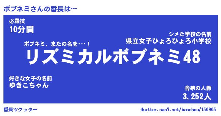 | 意味不明あだ名 | 『ペロリンボブネミ』『永久保存ボブネミ』 |