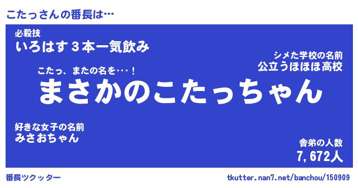 | ヒーロー風カッコイイあだ名 | 『スーパーコタッ』『ウルトラこたっマン』 |