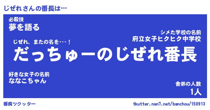 | ヒーロー風カッコイイあだ名 | 『スーパージゼレ』『ウルトラじぜれマン』 |