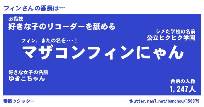 | 意味不明あだ名 | 『ペロリンフィン』『フィンフォーエバー』 |