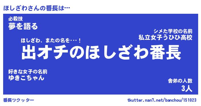 肩書あだ名 | 『ほしざわ店長』『ほしざわ国家主席』 |