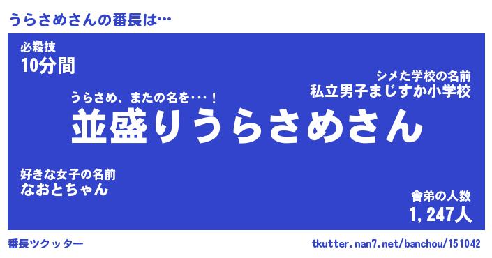| ピコ太郎風あだ名 | 『ウコ三郎』『ピウ六郎』『ウラ三郎』 |