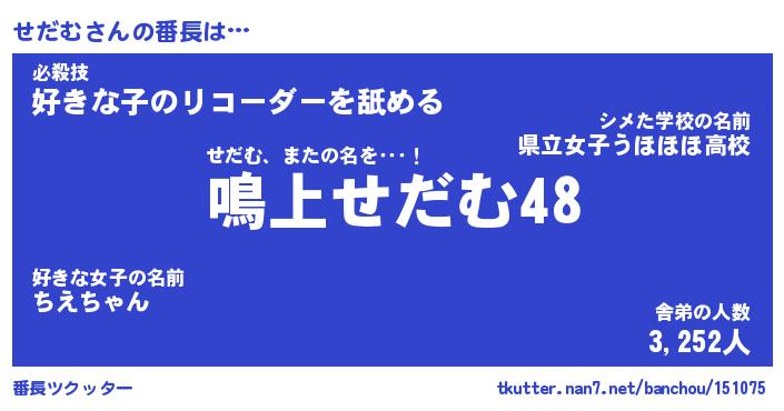 | 意味不明あだ名 | 『ペロリンせだむ』『せだむフォーエバー』 |