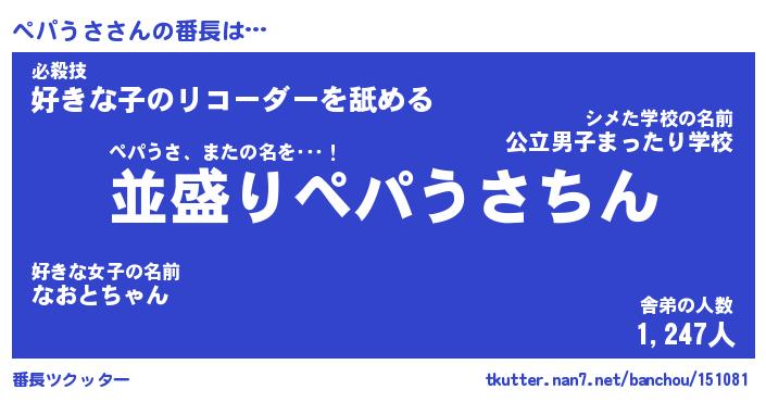 | 2回繰り返すあだ名 | 『ペパペパ』『ペペパパ』『にたにた』 |