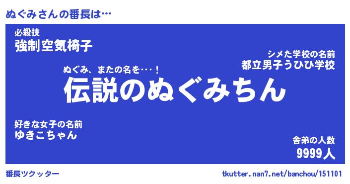 | 2回繰り返すあだ名 | 『ぬぐぬぐ』『ぬぬぐぐ』『うずうず』 |