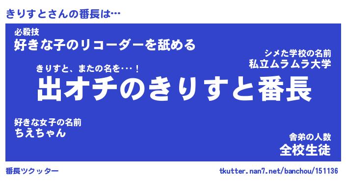 | 肩書あだ名 | 『きりすと店長』『きりすと国家主席』 |