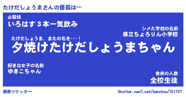 | ヘコむあだ名 | 『たけにー』『なまこ酢』『たけを』 |