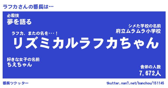 | 2回繰り返すあだ名 | 『ラフラフ』『ララフフ』『ぬらぬら』 |