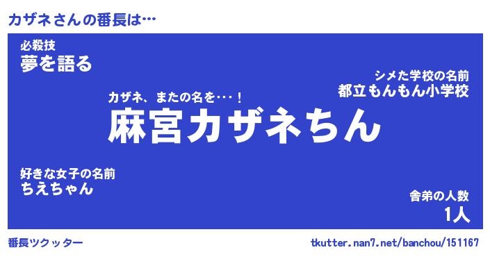 | 肩書あだ名 | 『カザネ御曹司』『カザネ国家主席』 |