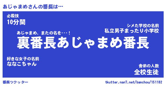 | 肩書あだ名 | 『あじゃまめ店長』『あじゃまめ総理大臣』 |