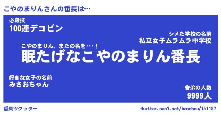 | 伝説のあだ名 | 『封印されし竜騎士こやのまりん』 |