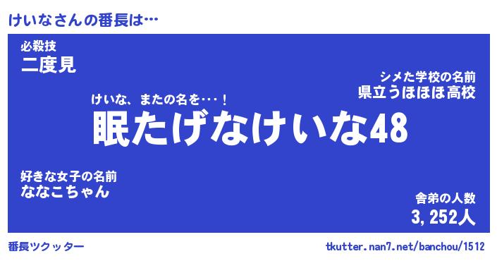 | 意味不明あだ名 | 『ペロリンけいな』『けいなフォーエバー』 |