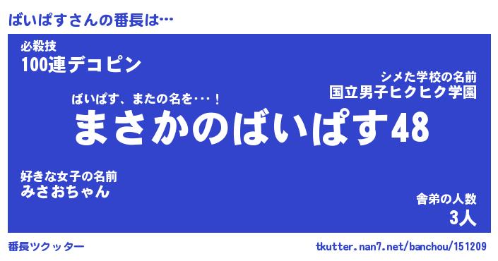 | 意味不明あだ名 | 『ペロリンばいぱす』『永久保存ばいぱす』 |