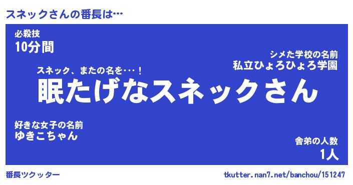 | 肩書あだ名 | 『スネック店長』『スネック大統領』 |