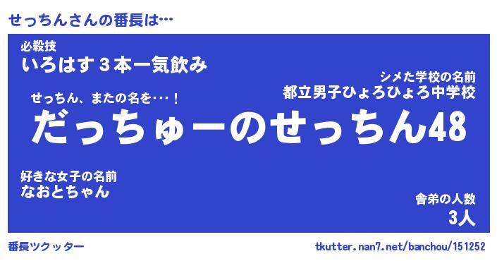 ヒーロー風カッコイイあだ名 | 『スーパーセッチン』『幻影騎士セッ』 |