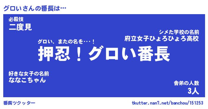 | ヒーロー風カッコイイあだ名 | 『スーパーグロイ』『ウルトラグロいマン』 |