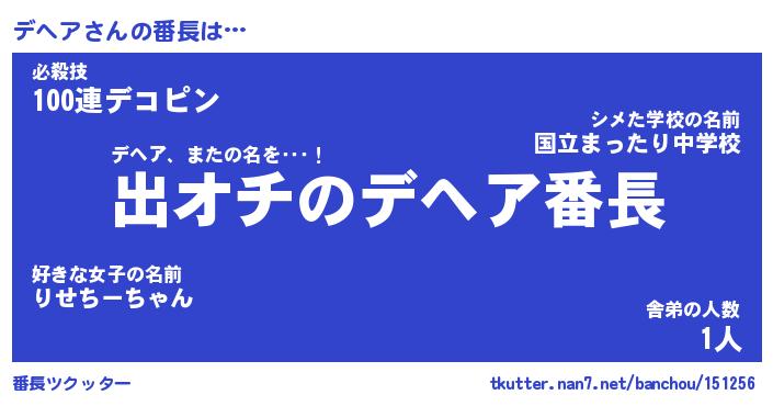 | ヘコむあだ名 | 『デヘにー』『つくし』『デヘっぺ』 |
