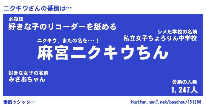 | 意味不明あだ名 | 『ペロリンニクキウ』『永久保存ニクキウ』 |