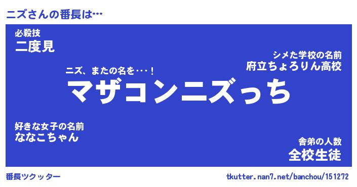 | ヘコむあだ名 | 『ニズふぇ~』『豆乳』『ニズっ子』 |