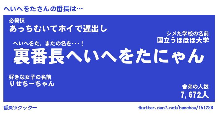 | 恥ずかしいあだ名 | 『プリティーへいへをた』『へいっちょ』 |
