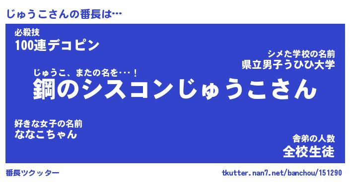 | ヒーロー風カッコイイあだ名 | 『スーパージュウコ』『魔戒騎士ジュ』 |