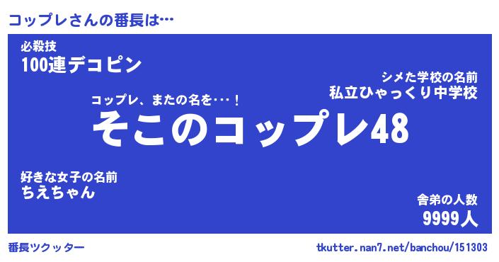 | 意味不明あだ名 | 『ペロリンコップレ』『永久保存コップレ』 |