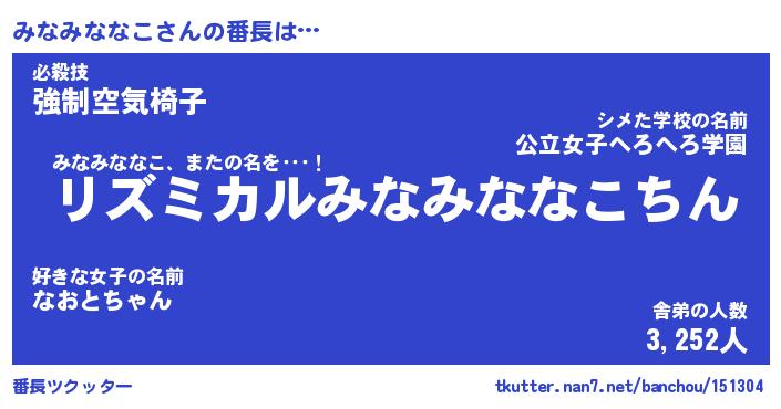 | 2回繰り返すあだ名 | 『みなみな』『みみなな』『げしげし』 |