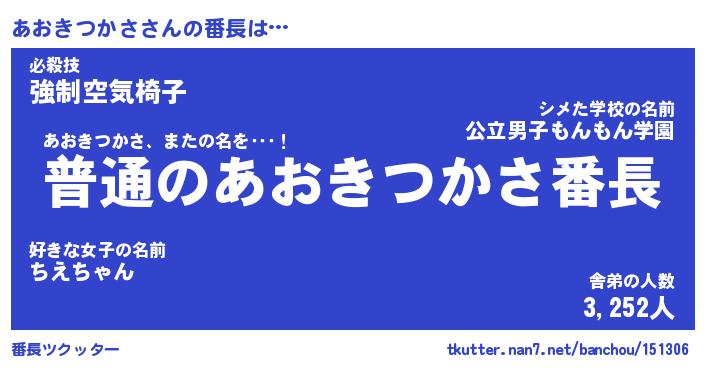 | 伝説のあだ名 | 『不死鳥のスナイパーあおきつかさ』 |
