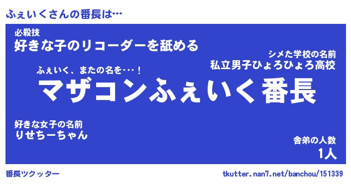 | ヘコむあだ名 | 『ふぇにゅー』『酢こんぶ』『ふぇお』 |