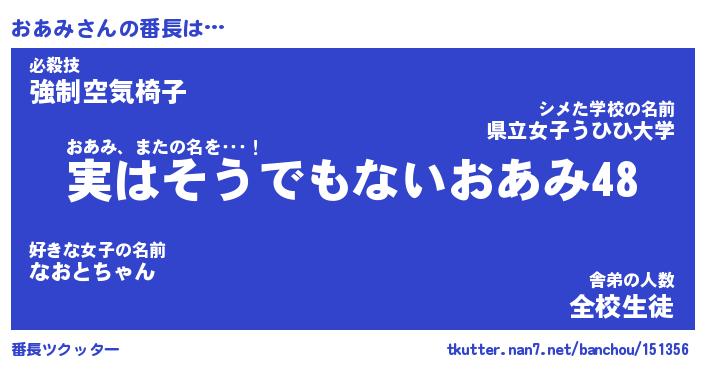 | 伝説のあだ名 | 『封印されしスナイパーおあみ』 |