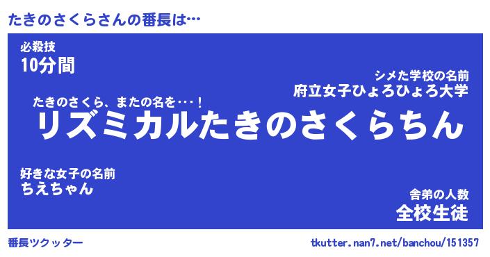 | 肩書あだ名 | 『たきのさくらCEO』『たきのさくら大統領』 |