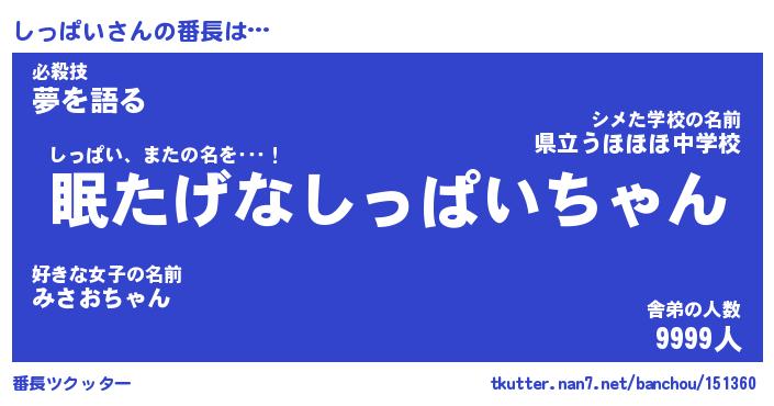 | ピコ太郎風あだ名 | 『シコ四郎』『ピシ次郎』『シッ三郎』 |