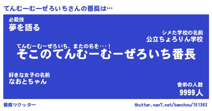 | 伝説のあだ名 | 『不死鳥のスナイパーてんむーむーぜろいち』 |