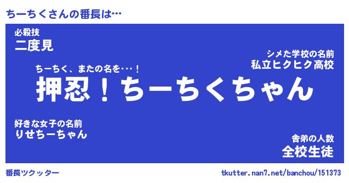 | 欧米人風あだ名 | 『マイケルちーちく』『ウサインちーちく』 |