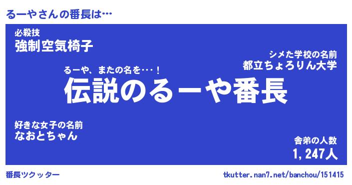 | 意味不明あだ名 | 『ペロリンるーや』『るーやフォーエバー』 |