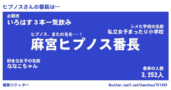 | ヘコむあだ名 | 『ヒプふぇ~』『なまこ酢』『ヒプお』 |