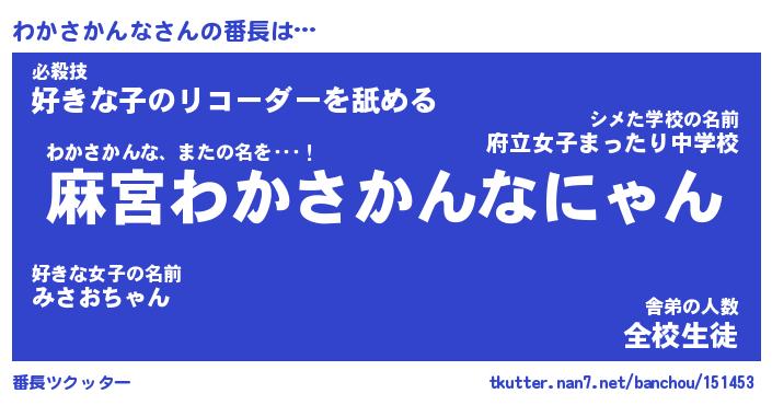 | 肩書あだ名 | 『わかさかんな店長』『わかさかんな団長』 |