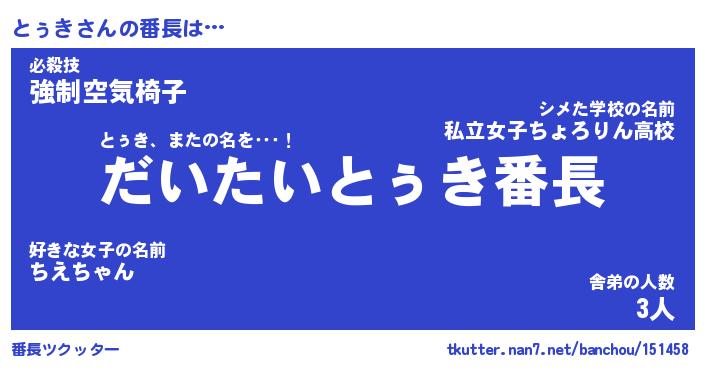 | ヒーロー風カッコイイあだ名 | 『スーパートゥキ』『ウルトラとぅきマン』 |