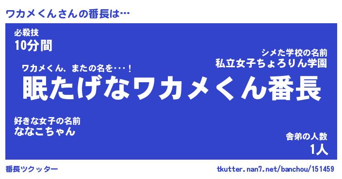 | ヒーロー風カッコイイあだ名 | 『スーパーワカメクン』『魔戒騎士ワカ』 |
