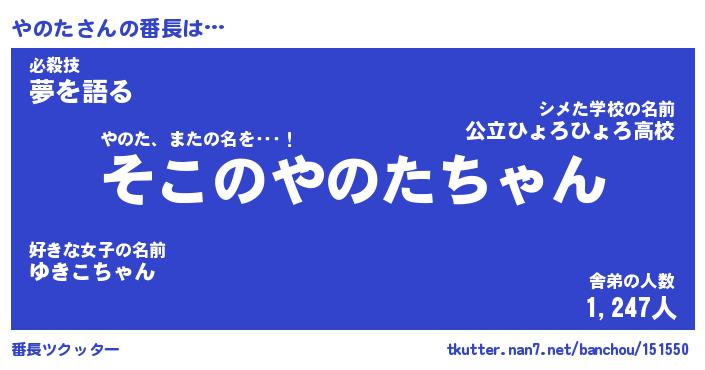 | 意味不明あだ名 | 『ペロリンやのた』『やのたフォーエバー』 |