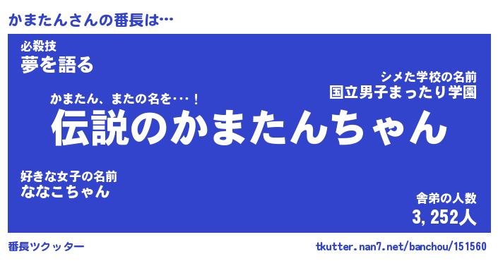 | 意味不明あだ名 | 『ペロリンかまたん』『永久保存かまたん』 |