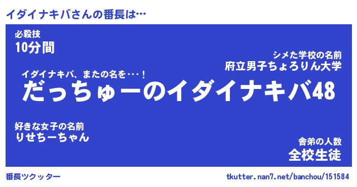 | 男性向けラノベタイトル風あだ名 | 『イダイナキバの憂鬱』 |