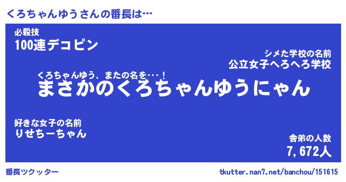 | ヒーロー風カッコイイあだ名 | 『スーパークロチャンユウ』 |