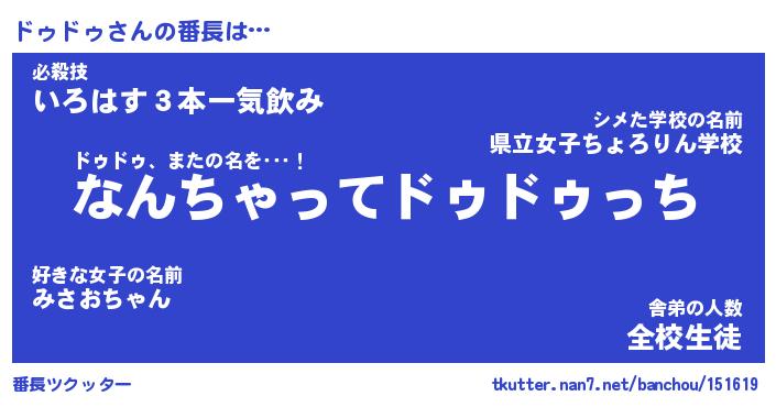 | 2回繰り返すあだ名 | 『ドゥドゥ』『ドドゥゥ』『うねうね』 |