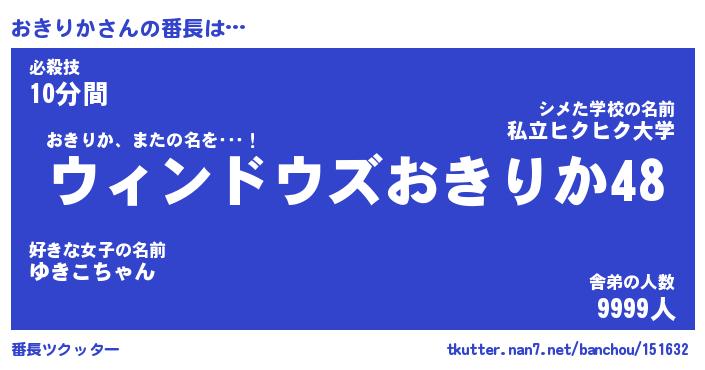 | 伝説のあだ名 | 『伝説のスナイパーおきりか』 |