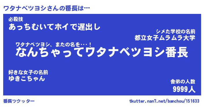 | ピコ太郎風あだ名 | 『ワコ二郎』『ピワ八郎』『ワタ六郎』 |