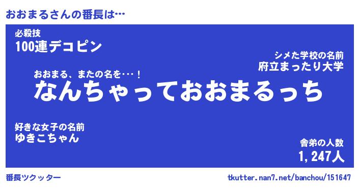 | 意味不明あだ名 | 『ペロリンおおまる』『永久保存おおまる』 |