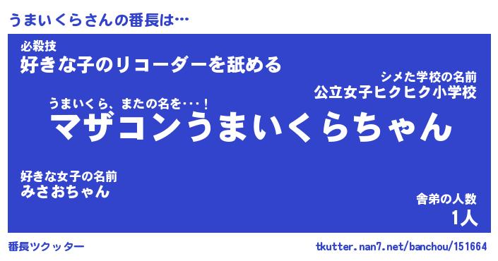 | 伝説のあだ名 | 『封印されしスナイパーうまいくら』 |