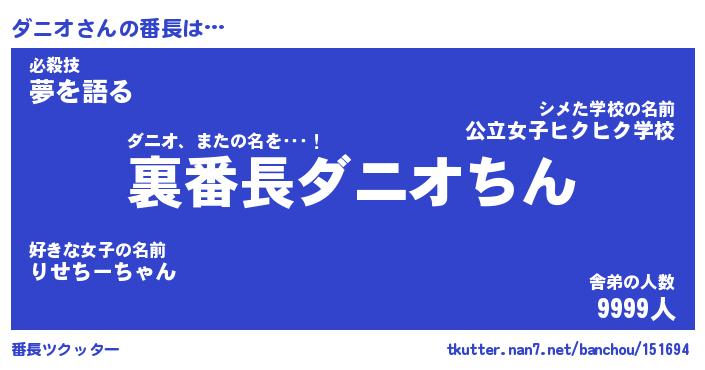 | 肩書あだ名 | 『ダニオ社長』『ダニオ大統領』 |