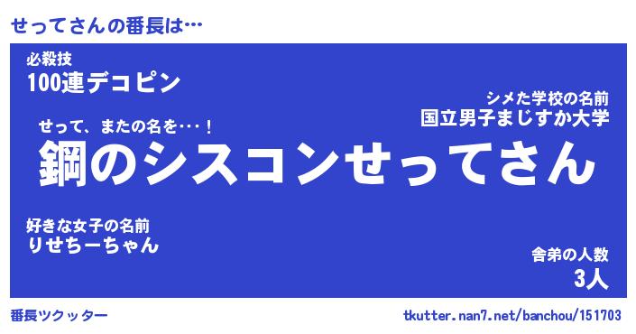 | ファンタジー風あだ名 | 『セッフェル』『エターナルセッテー』 |